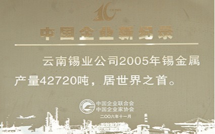 2005年,云錫錫產(chǎn)量達(dá)42720噸,躍居世界錫行業(yè)之首。